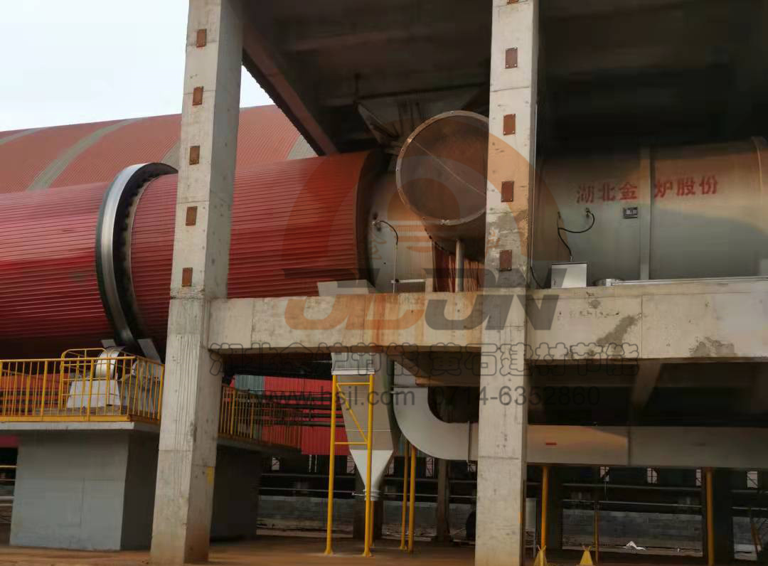 1、在筒體的進(jìn)料端為防止倒料,設(shè)置擋料圈;外側(cè)重質(zhì)耐火材料等防護(hù),進(jìn)料口水平,垂直向上。為提高筒體的使用壽命筒體進(jìn)料端、出料端長(zhǎng)度方向增設(shè)襯板,采用螺栓安裝;出料罩預(yù)留除塵撲集口。